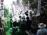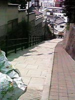 ![]() こちらは、大江神社横の石段。 上町台地西側斜面の傾きと高さが よくわかる。 |