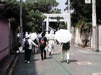 ![]() 大江神社にむかう。この辺まで来る と強烈な夏の日差しでかなりぐったり する。 |
