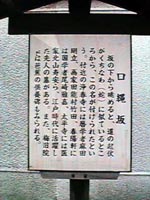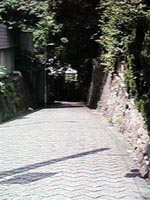 ![]() 口縄坂。坂の下からながめると くちなわ(蛇)のように見えるので この名前がついたらしい。 |