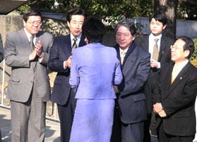 | 太田知事を握手で迎える中村議員 | |||