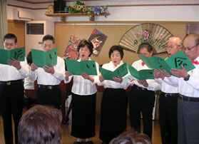 ![]() 地元翠香園地域の「花いっぱいの会」の 新年行事で「熱唱」される方々 | ||