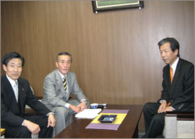 ![]() 右から中村議員、冬柴大臣 | ||