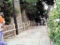![]() こちらは、大江神社横の石段。 上町台地西側斜面の傾きと高さが よくわかる。 |