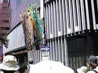 ![]() 文楽劇場前で、断層の解説。 |