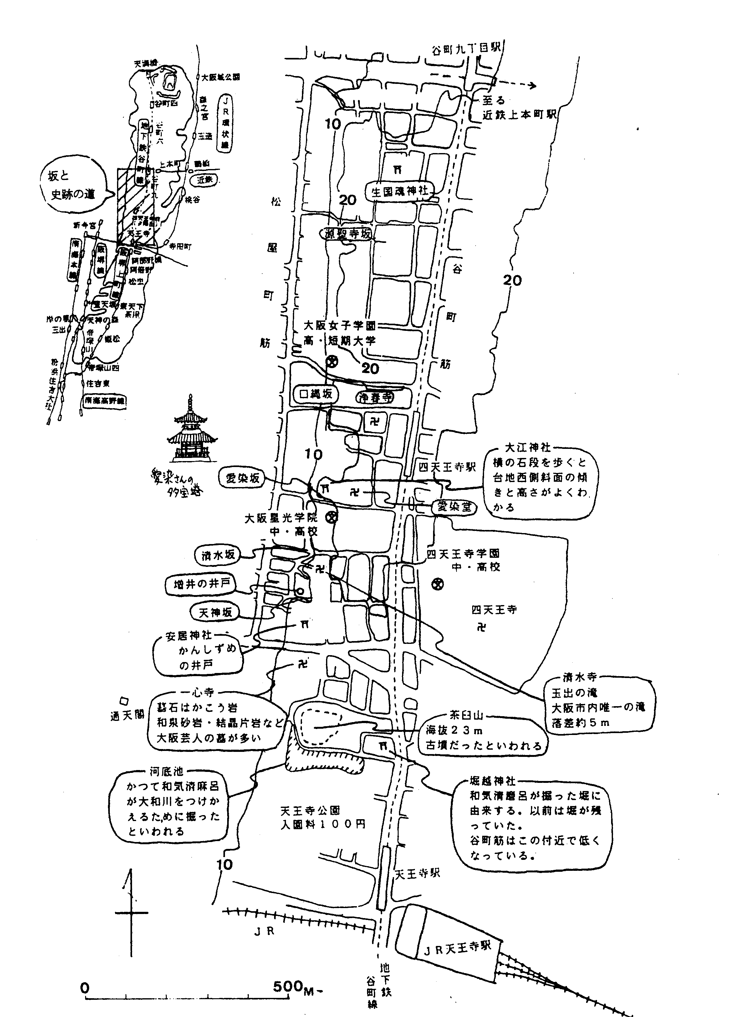 上町台地が断層になっていて、その片鱗が見られる場所を2時間かけてまわりました。でも、実際には、断層が見えるわけではなく、