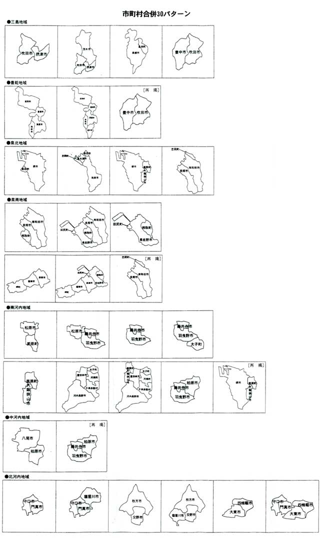 大阪府の「市町村の合併の推進についての要綱」の策定に関する懇話会が合併パ夕一ンの作成に