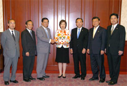 太田知事は「趣旨を踏まえ、よりよい制度の検討を進める」 と表明しました。 私共の強い申し入れにより、来年4月からの実施は 見送られる予定ですが、見直しにより生活基盤が失われ ないようセーフティネットを設ける等、9月府議会で本格的な 議論をすることになりました。ぜひご意見をお寄せ下さい。 また、期限付き入居制度は、35歳未満の新婚、子育て 世帯を対象に10年間の期間限定で入居できるもので、 若年層入居促進策として、本年11月募集から開始する ことが決定しました。 【写真】知事に強く申し入れを行う・右3人目(知事公館) |