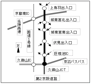 | 阪神高速道路梶A京都市が建設を進めてきた阪神高速8号京都線の一部(延長5.5km)と国交省近畿地方整備局、西日本高速道路鰍ェ建設を進めている第2京阪道路の一部(延長0.9km)の計6.4kmが、来年1月19日に繋がり開通します。 今回の開通により、京都市南部の幹線道路である国道1号や国道24号などの渋滞が緩和され、京都駅から八幡方面(約49分)が約31分に時間短縮。これにより京都・枚方市間の通過もスムーズになります。今後、阪神高速8号京都線(全長10.1km)の上鳥羽出入口〜鴨川東出入口間が平成22年度、鴨川東出入口〜山科出入口間が平成20年度に完成する予定です。開通した区間の通行料金は、普通車450円、ETC割引では350円。