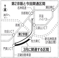 | 第2京阪3月20日開通 国道1号の渋滞緩和 | |