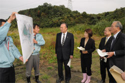 四条畷市交野市清掃施設組合が、新ゴミ処理施設建設を予定している交野市私市の計画地から有害物質が検出されたことから、公明党交野市議団と11月2日に現地を調査。 同組合が、計画地(5.7ヘクタール)のうち79地点で土壌調査した結果、6地点の土壌と13地点の地下水からダイオキシン類、ベンゼンなどが基準値を超える汚染が確認されました。原因は、昭和50年頃に建設残土処分場として利用されていたため有害物質が混入したとされています。 交野市や同組合に対し、周辺住民で地下水を利用している家庭に安全な飲料水を確保すると共に、引き続き、周辺地域における井戸水の水質調査や土壌改良など安全な環境保全対策に万全を期すよう申し入れました。 |