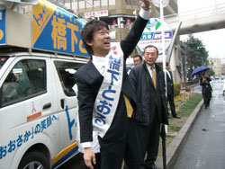 遊説に同行して思ったことは、聴衆の反応を見て、話題や言い回しをかえていることでした。その場の空気を読み、敏感に対応する能力はテレビ仕込みか、天性かは分かりませんが…。その光景を密着取材しているテレビカメラで発信されることを十分意識しての行動は成功したと言えます。